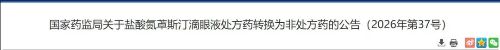 《公告》指出,根据《处方药与非处方药分类管理办法(试行)》(原国家药品监督管理局令第10号)的规定,经国家药品监督管理局组织论证和审核,复方氯化钠滴眼液/盐酸氮䓬斯汀滴眼液由处方药转换为非处方药。品种名单及其非处方药说明书范本一并发布。